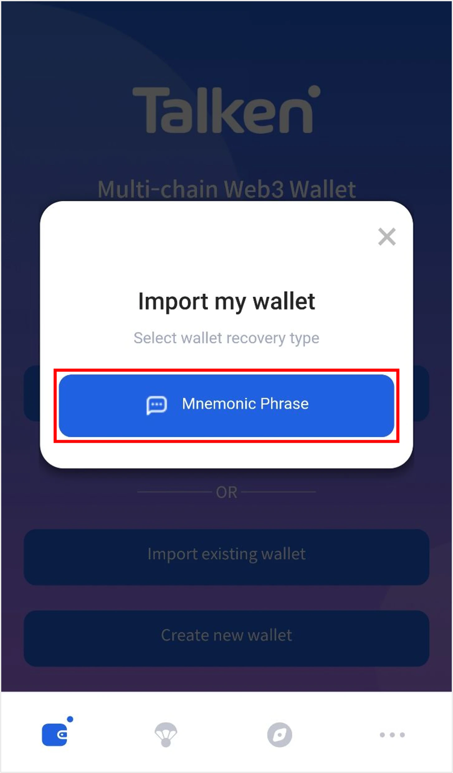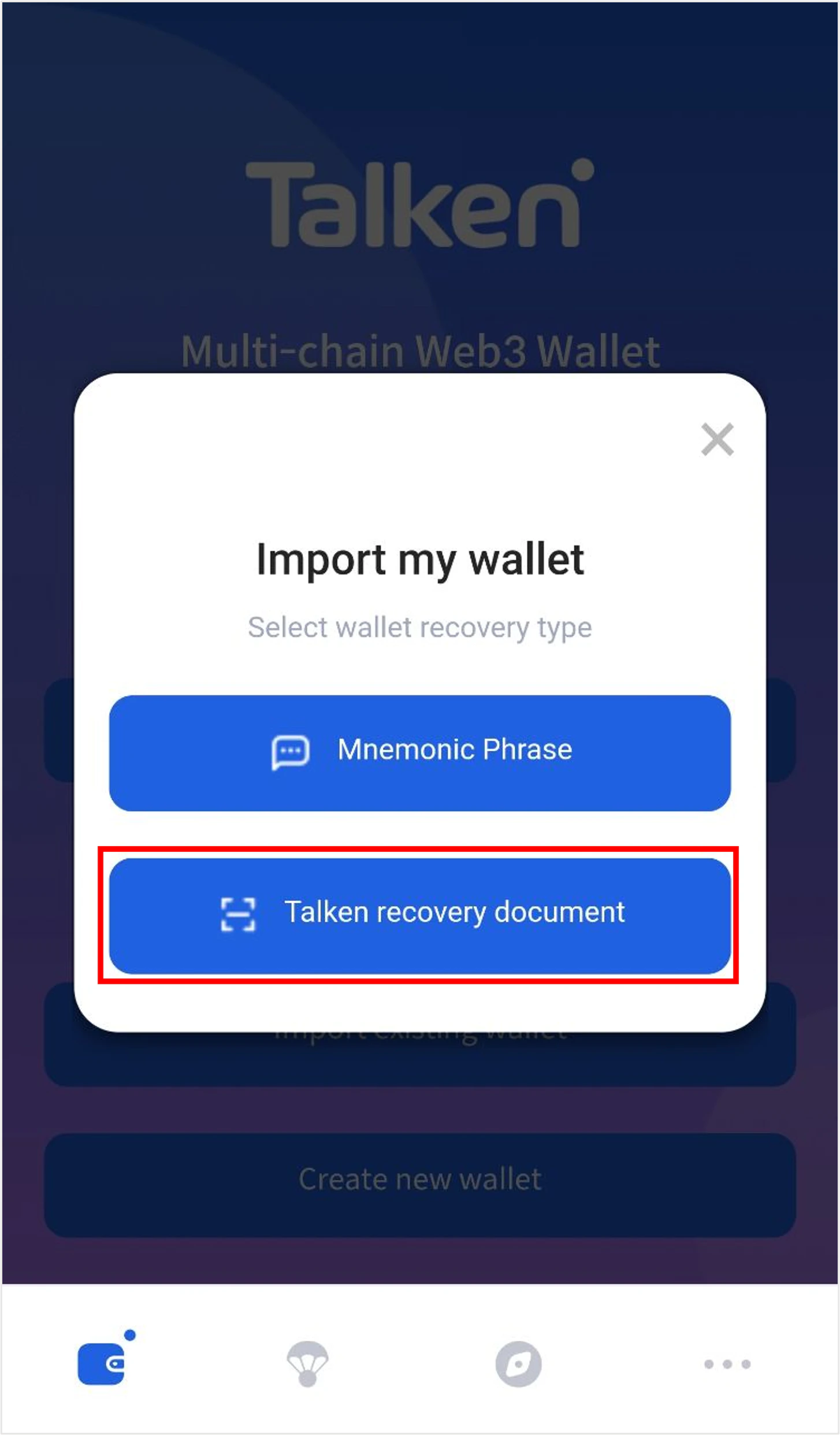You must be logged in to the Talken account that created the wallet with the recovery document to use this option.