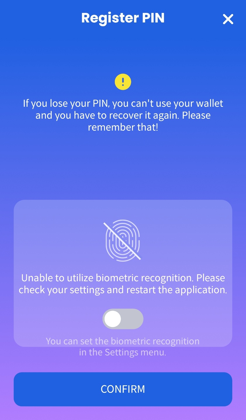 After PIN registration, you can choose whether to use biometric device (fingerprint, faceID, etc.).