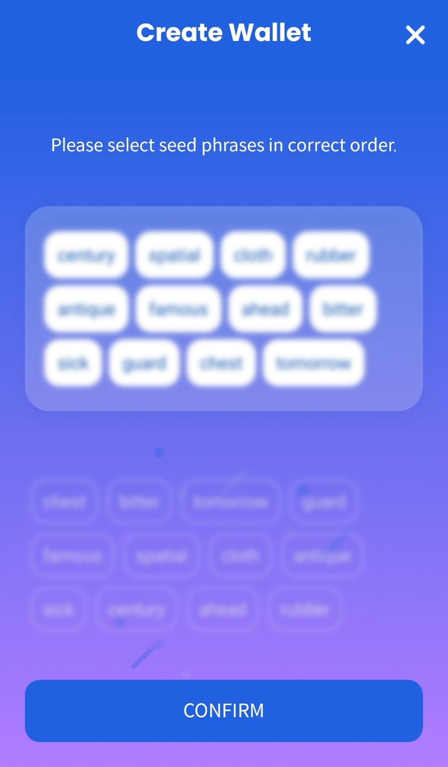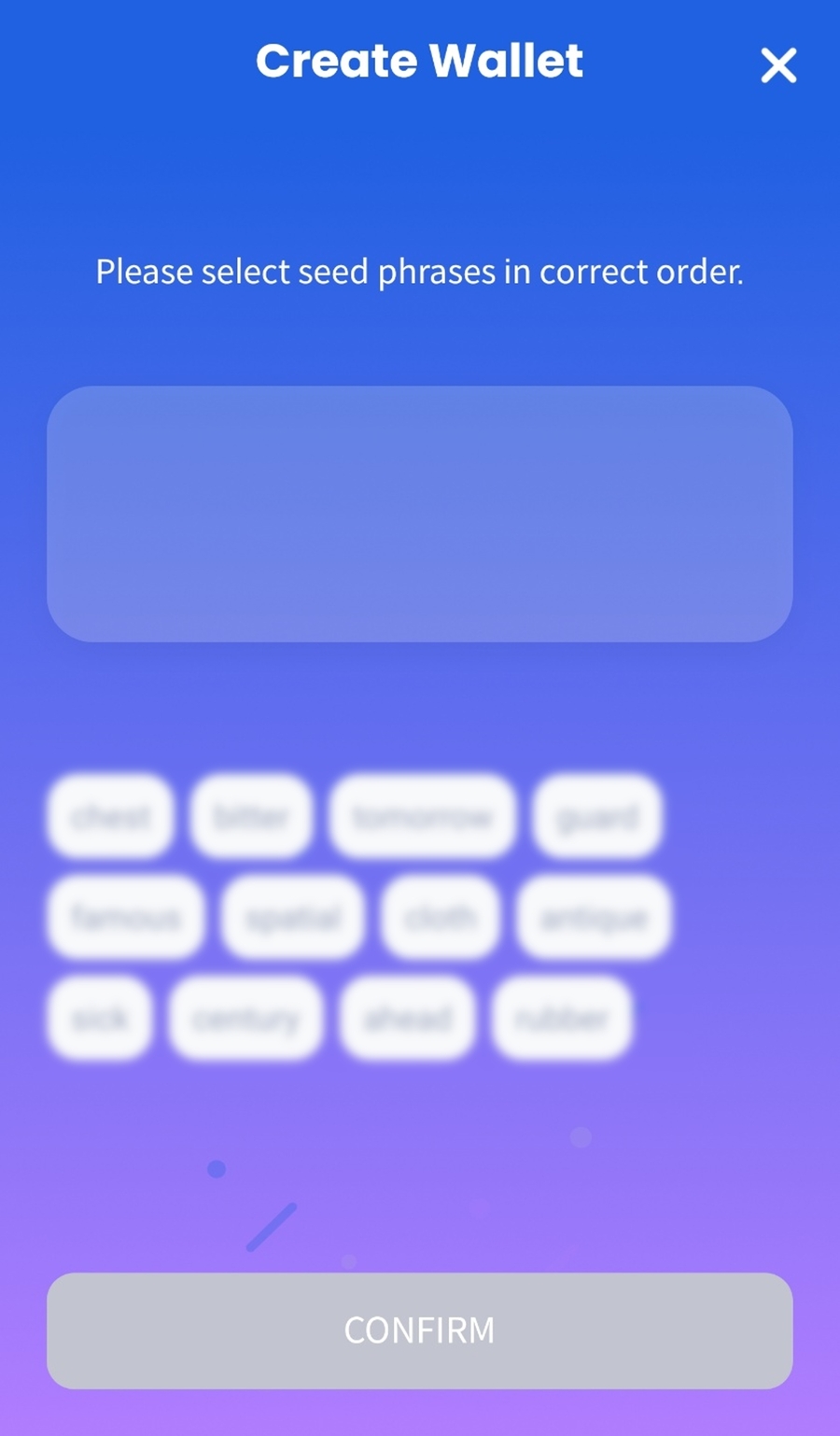 Please re-enter the mnemonic registered above in order and press the OK button.