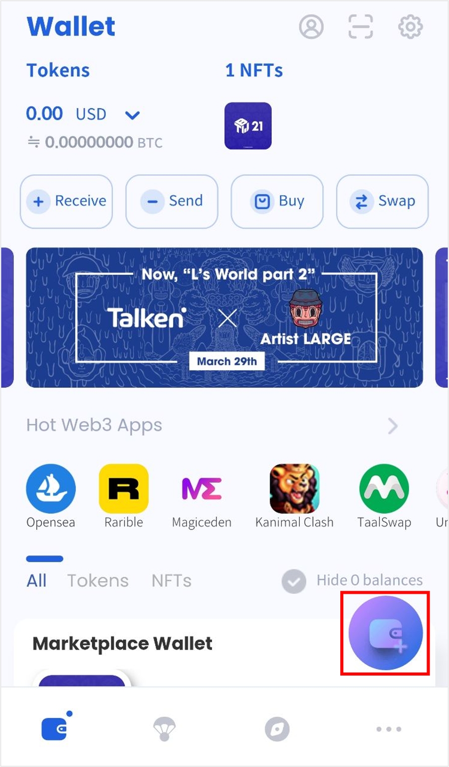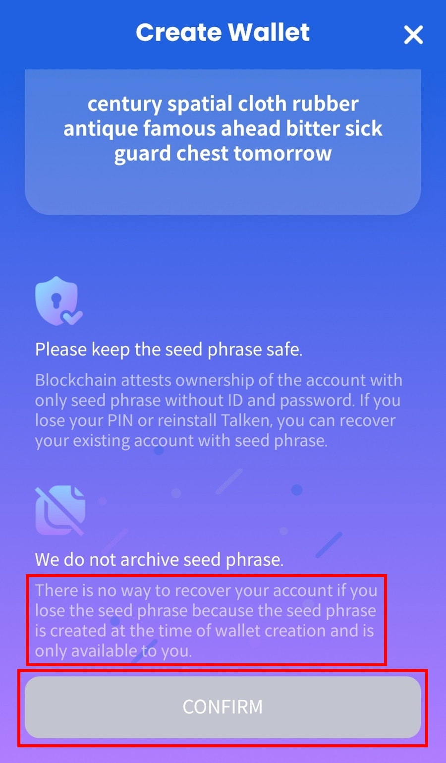 Your Talken wallet registration using the mnemonic issued from another wallet has been completed through this process.