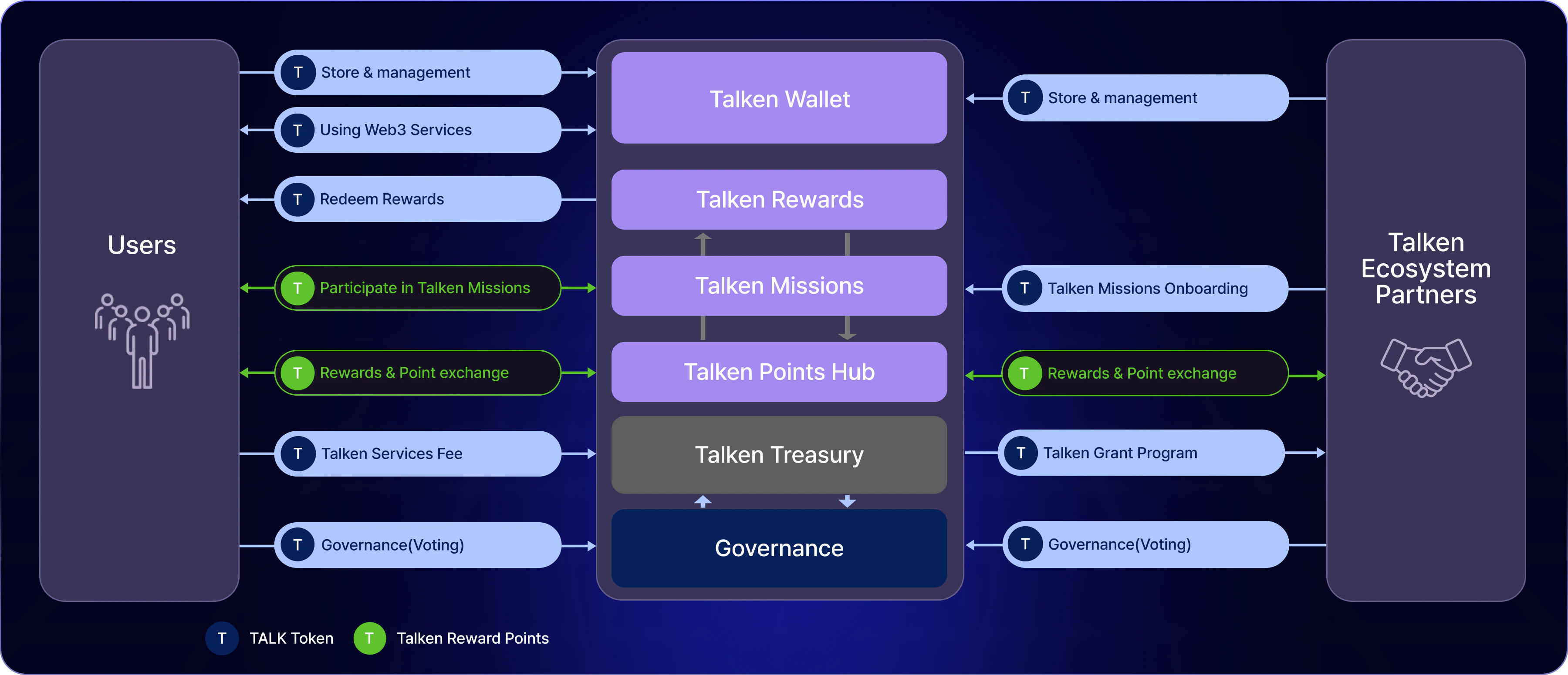- 각종 서비스 수수료 지불 및 Talken 리워드 획득