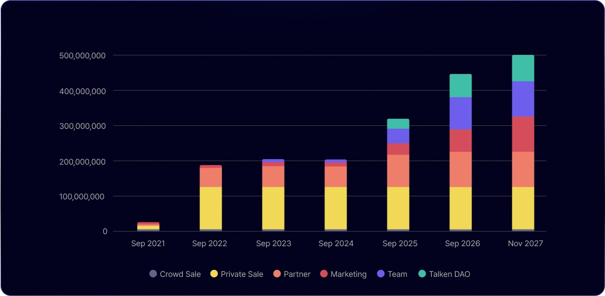 TALK tokens were issued in April 2021 and will be gradually unlocked according to schedule until November 2027.